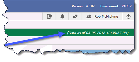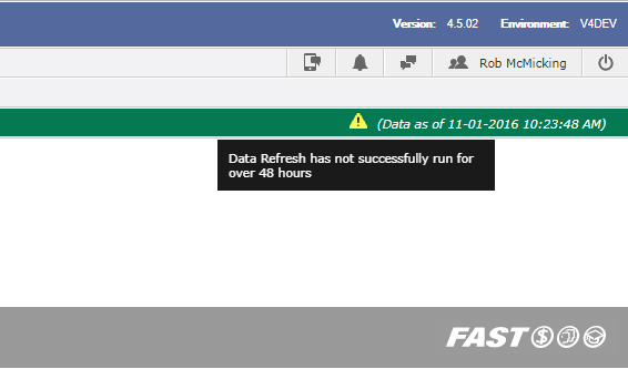 The application's navigation bar will always indicate when the data refresh last ran, and thus how current the data in FAST will be: