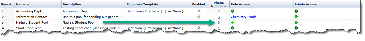Click the number 0 and this will bring you directly to the SMS Pool Numbers page, allowing you to Add/Remove Numbers from the Pool.