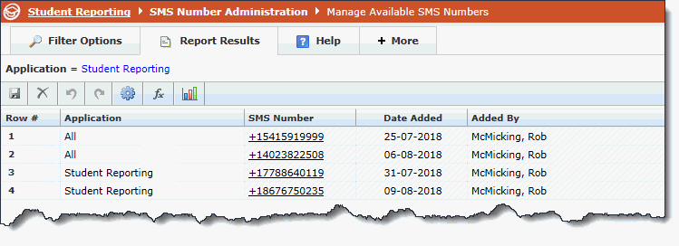 When I review the Available Numbers (Number Administration) Page, I can clearly see that two of those numbers have already been assigned to FAST Student, while the other two are in the Application labelled "All". This means that it is currently available from any FAST application and the first to select and use it will decide the assignment.
