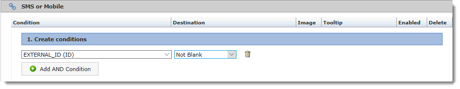 For the SMS field setup, select at least one value. We would suggest using the External ID and/or the Internal ID fields: