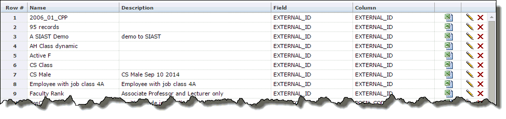 Data imported from a spreadsheet or created from a query can be used to create a dynamic selection. The import process uses a Wizard to select the column data, match the column to a filter, and give it a name. If you are using a spreadsheet exported from a FAST reporting page, you need to delete some rows before starting. For each type of import, Step one of the wizard is slightly different; refer to the section below for the option you are using.