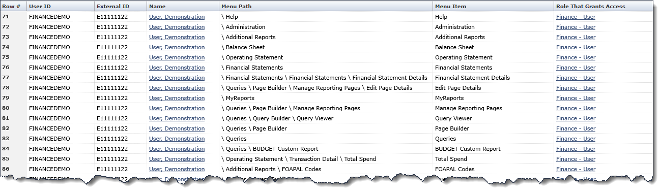 To review the Menu Access in your FAST application, you can begin by running Menu Access by Role to get a firm understanding of how Menu Access is currently defined. This will show you what Roles have access to which menu items across your application. You can then run the Menu Access by User report to see which end users have access to which reports and menu items, and also which Role(s) grant them access to each of those items.