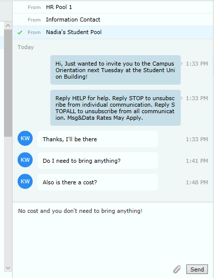 While using the SMS functionality in the Communication Centre is a great way to communicate to one or more employees or students, those same groups can also respond to the text message and the reply will be sent directly into FAST!