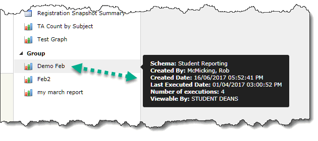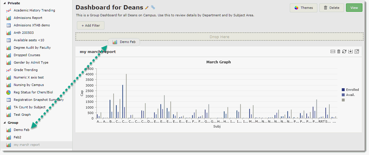 Graphs that have been saved to the Group assigned to this Dashboard (in this case, Graphs saved to the STUDENT DEANS group), and