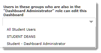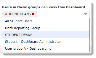 Important Note: The only groups that will display here are groups where one or more members of the group has the ability to Manage Dashboards. This is regulated by the Role called "Dashboard Administrator".