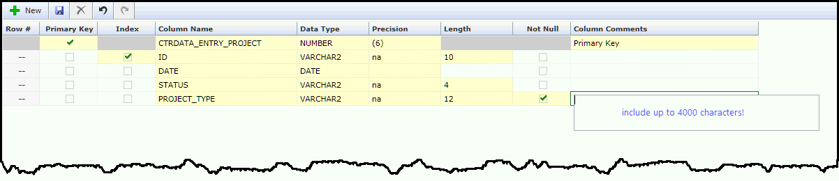 To add additional columns to your table, use the data entry grid provided and click + New to begin.