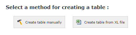 Select the Create table manually button to start the table builder sequence