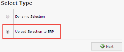 When you reach Step 1 of the Upload Wizard, select Upload Selection to ERP, then click Next.
