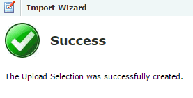 If successful, the Import Wizard will notify you that the Upload Selection was successfully created;
