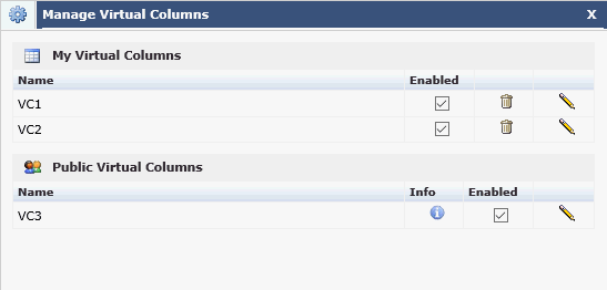 You can enable or disable your Personal or the Public Virtual Columns using the Enabled check box