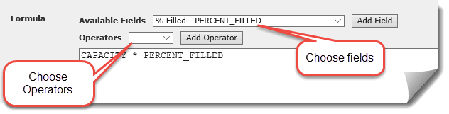 Select from the Available Fields to include columns in your formula and use the Operators to complete the formula or equation to be used.