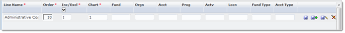 Type the Line Name, for example Administrative Costs. TAB or click into the next field.