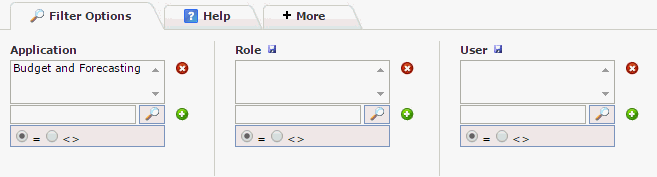 The first page is a standard Filter Options Page to query by Role and/or by User.