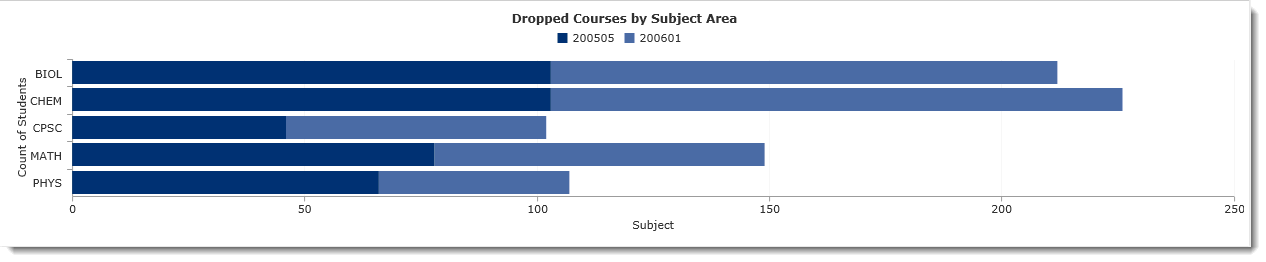 In this sample, I used Subject Code as my X-Axis, a Count of Students as my Y-Axis and I "grouped" these values by Academic Term