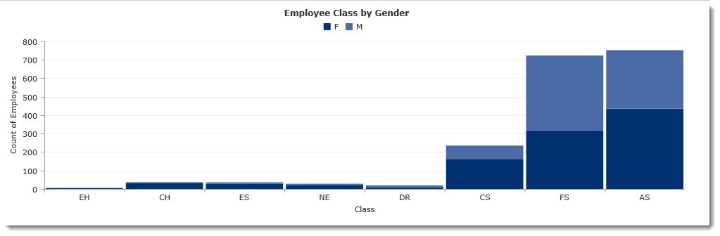 In this sample, I used Employee Class Code as my X-Axis, a Count of Employee ID's as my Y-Axis and I "grouped" these values by Gender