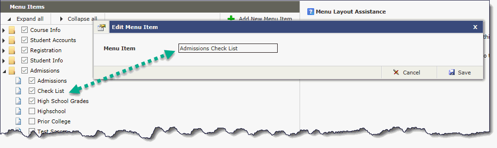 Click the menu or menu header (the text) to open the Edit Menu Item dialog box: