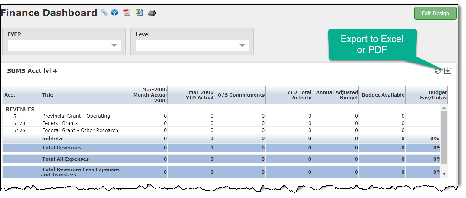 Dashboards and executed reports can be exported into an Excel file and opened or saved to your computer.