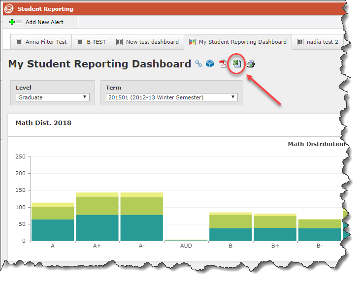 To export a dashboard to an Excel file, you will first need to enable pop-ups in your browser's settings. Then, simply click the Excel icon to the right of the Dashboard title: