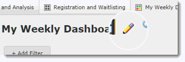 To edit the Title, security or Description of your Dashboard, click the Edit Pencil next to the Dashboard Title:
